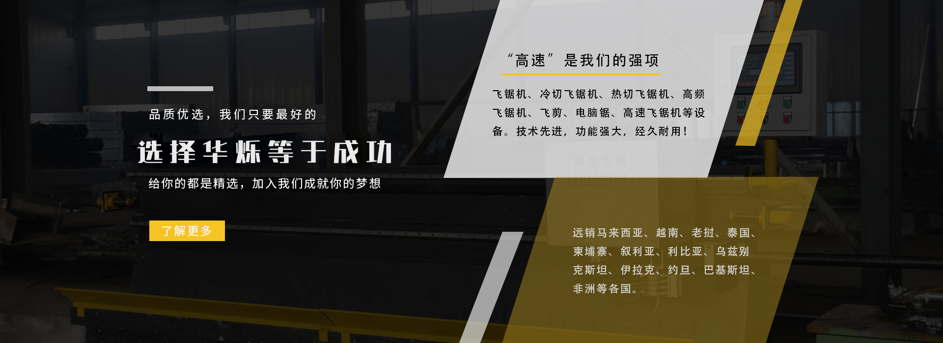 廊坊華爍自動化設備有限公司以誠信交朋友、服務求生存、技術求發(fā)展為宗旨,多年來專注研制、生產、銷售高頻焊管生產線輔機——數(shù)控高頻冷切飛鋸機為主線,為國內外客戶提供高品質的需求產品。如:飛鋸機、冷切飛鋸機、熱切飛鋸機、高頻飛鋸機、飛剪、電腦鋸、高速飛鋸機等設備。 廊坊華爍超過多年的技術經驗和研發(fā)能量累積,有強大的系統(tǒng)集成能力,專門為用戶提供量身定制的控制方案,并承攬依用戶需求來開發(fā)設計符合機械要求的新型生產系統(tǒng)。 華爍生產的產品暢銷國內各省,遠銷馬來西亞、越南、老撾、泰國、柬埔寨、敘利亞、利比亞、烏茲別克斯坦、伊拉克、約旦、巴基斯坦、非洲等各國。 華爍擁有售后服務技術人員,具有服務上千家客戶的實戰(zhàn)經驗,可提供視頻指導或現(xiàn)場技術安裝指導...